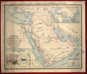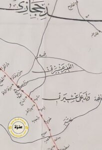 خريطة عثمانية في القرن التاسع عشر لخط سكة حديد الحجاز وموضح فيها منازل قبيلة عنزة