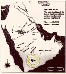 خريطة المستشرق الانكليزي جيمس بكنغهام عام 1825م ويظهر فيها توزيع قبائل الجزيرة العربية ومنها عنزة وقحطان وعتيبة والظفير والعوازم والرشايدة وحرب وشمر نجد والجزيرة