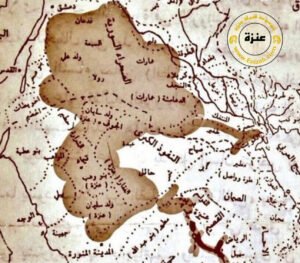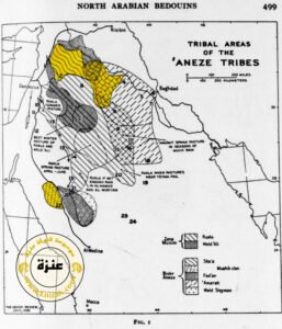 خريطة توضح توزع وانتشار قبيلة عنزة في بدايات القرن العشرين ميلادياً من إعداد الباحث والمؤرخ عبدالله الحمياني wirdacademy@