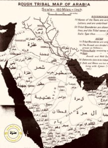 خريطة وضعت من قبل الكتيبة البحرية الحربية البريطانية لتوزع القبائل العربية عام 1916م المصدر: محمد الخليفة desertlover79@