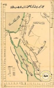 خريطة عثمانية عام 1326هـ - 1905م توضح توضع قبائل ولد علي والفقرا من عنزة بين خيبر وتيماء