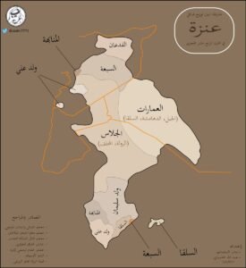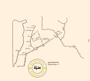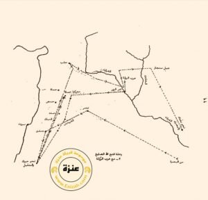 خريطة توزع قبيلة عنزة في القرن الرابع عشر الهجري من إعداد الباحث والمؤرخ عبدالله الحمياني