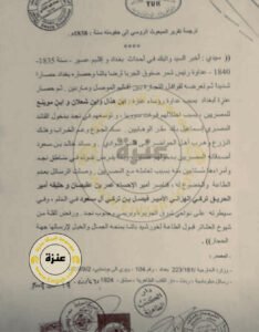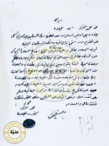 وثيقة عثمانية مرسلة من وكيل ابن رشيد للسلطات العثمانية تتحدث عن صراع الفقرا من عنزة مع الدولة العثمانية وسعود بن رشيد وقتل أحد قادة العثمانيين