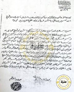 وثيقة من الشيخ برع الدرويش الصقري من عنزة الأحواز عام 1870م وهم مجموعة من الصقور من عنزة هاجروا منذ مئتين عام تقريباً للأحواز لكثرة مواشيهم والبحث عن مراعي كافية، وشيدوا فيها (قلعة قبان) الشهيرة، وهم أبناء عجاج بن نغيمش بن عتيق بن مصاعب الصقري.